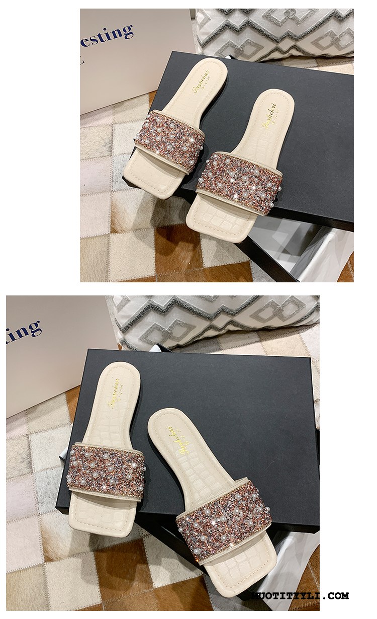 Naisten Tohvelit Kauppa Liukumaton Suuntaus Naisille Tasainen Helmi Musta Punainen